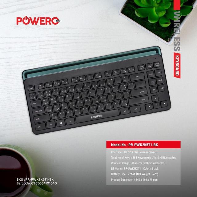 Ergonomic Wireless Dual Mode Keyboard - PR-PWK2K5T1-BK