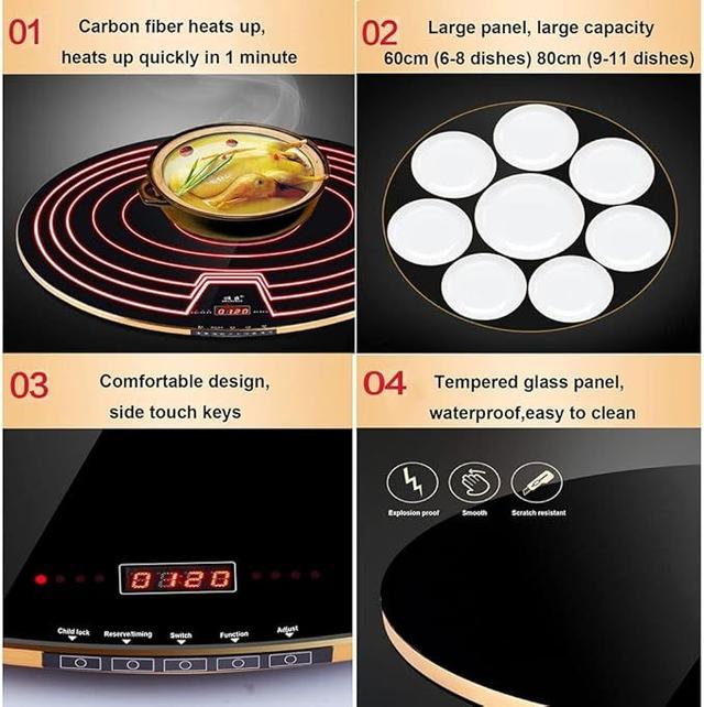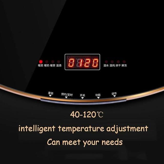 This electric warmer provides even and rapid heat distribution, with adjustable temperature settings from 40°C to 120°C, and is suitable for all types of heat-resistant cookware.