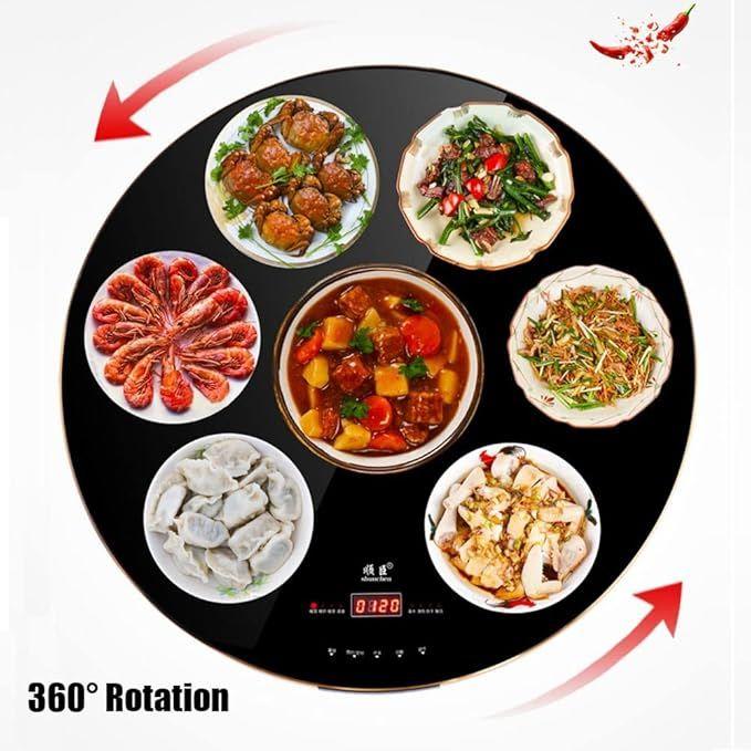 Rotating electric food warmer made of tempered glass, keeps food hot
