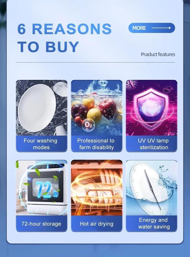 【Water-Saving Champion】With a maximum water consumption of just 1.5 liters per wash, this dishwasher is designed for eco-conscious users. Enjoy the convenience of effortless cleaning while significantly reducing water waste.