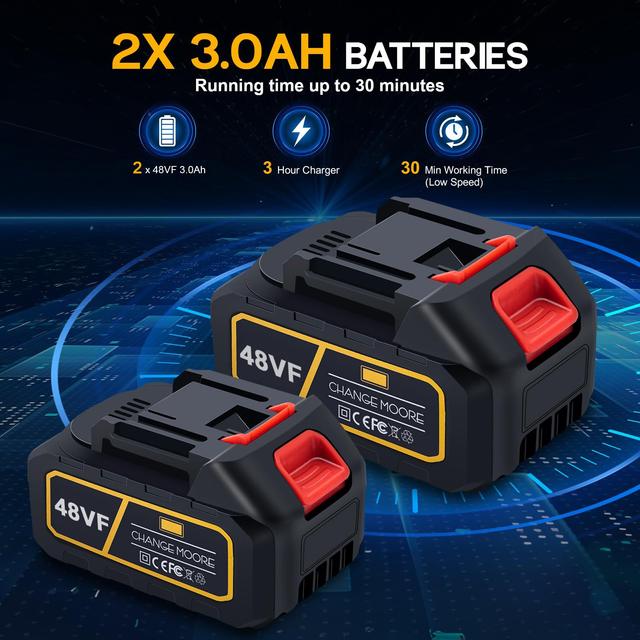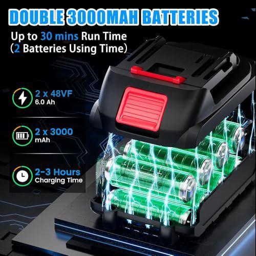 One of the key advantages of this rechargeable jet blower is its dual 21V 2000mAh lithium-ion batteries. In addition to providing long-lasting operation, these batteries feature intelligent protection circuitry. Safety features include protection against overheating, overload, overcharging, overvoltage, and full discharge. A full charge takes approximately 2 to 4.5 hours and provides about 30 minutes of continuous operation per charge.