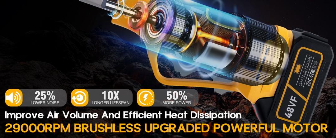 This handheld fan features a powerful 400-watt motor and a rotation speed of up to 29,000 RPM, generating wind speeds of up to 63 meters per second (260 miles per hour). It also delivers an airflow of up to 600 cubic feet per minute (15 liters per second), comparable to the blowing power of professional industrial tools. This high power allows you to easily remove even fine dust particles and light snow from various surfaces.
