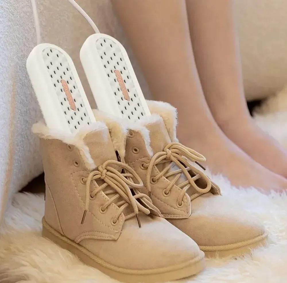 The Shoe Dryer is designed for drying all types of shoes and warming feet. It helps dry any type of footwear, including children's shoes. Using this electric shoe dryer allows your shoes to dry in just a few hours without damaging them. Thanks to smooth and even heating, it gently and evenly dries shoes in a gentle mode, preserving their shape. It extends the life of leather, membrane, children's shoes, boots, shoes, sneakers, and trainers.