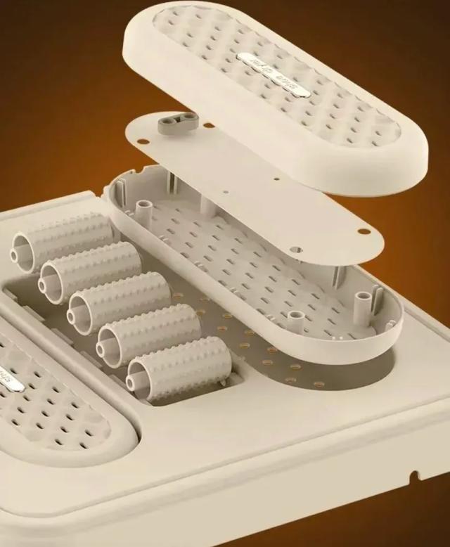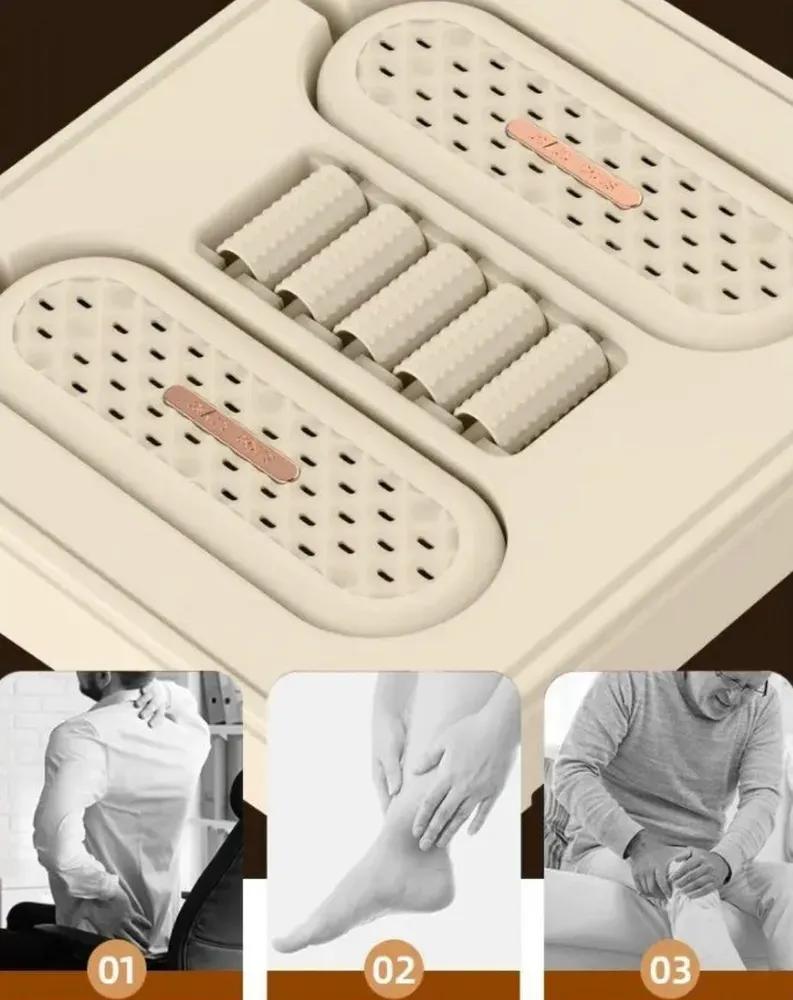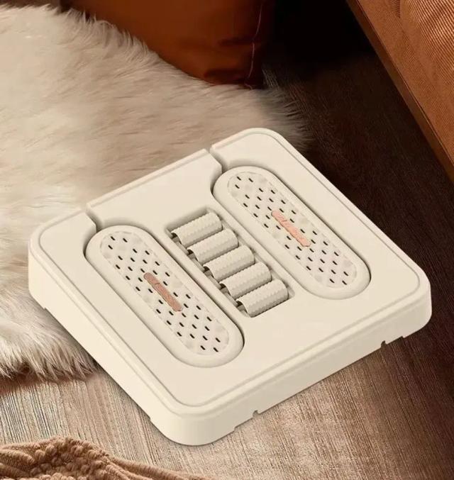 This three-in-one shoe dryer serves multiple purposes: it functions as a foot warmer and shoe dryer. It offers foot massage capabilities using a human-hand-simulated design with a wave-shaped massage roller in the center that activates acupressure points on the sole and relaxes foot muscles, relieving fatigue after a long day.