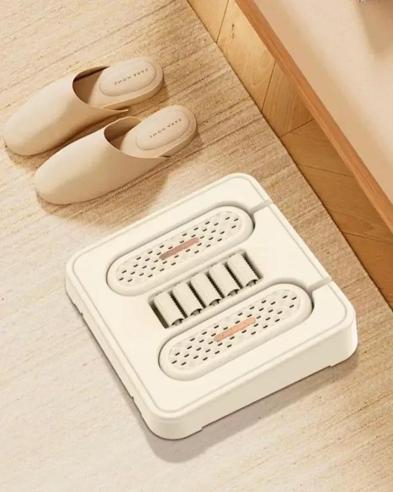 This shoe dryer has an antimicrobial effect. This foot dryer is convenient to use on cold days while working at a desk. You can warm not only your shoes but also your feet. And the convenient massage rollers will help you relax after a hard day at work.