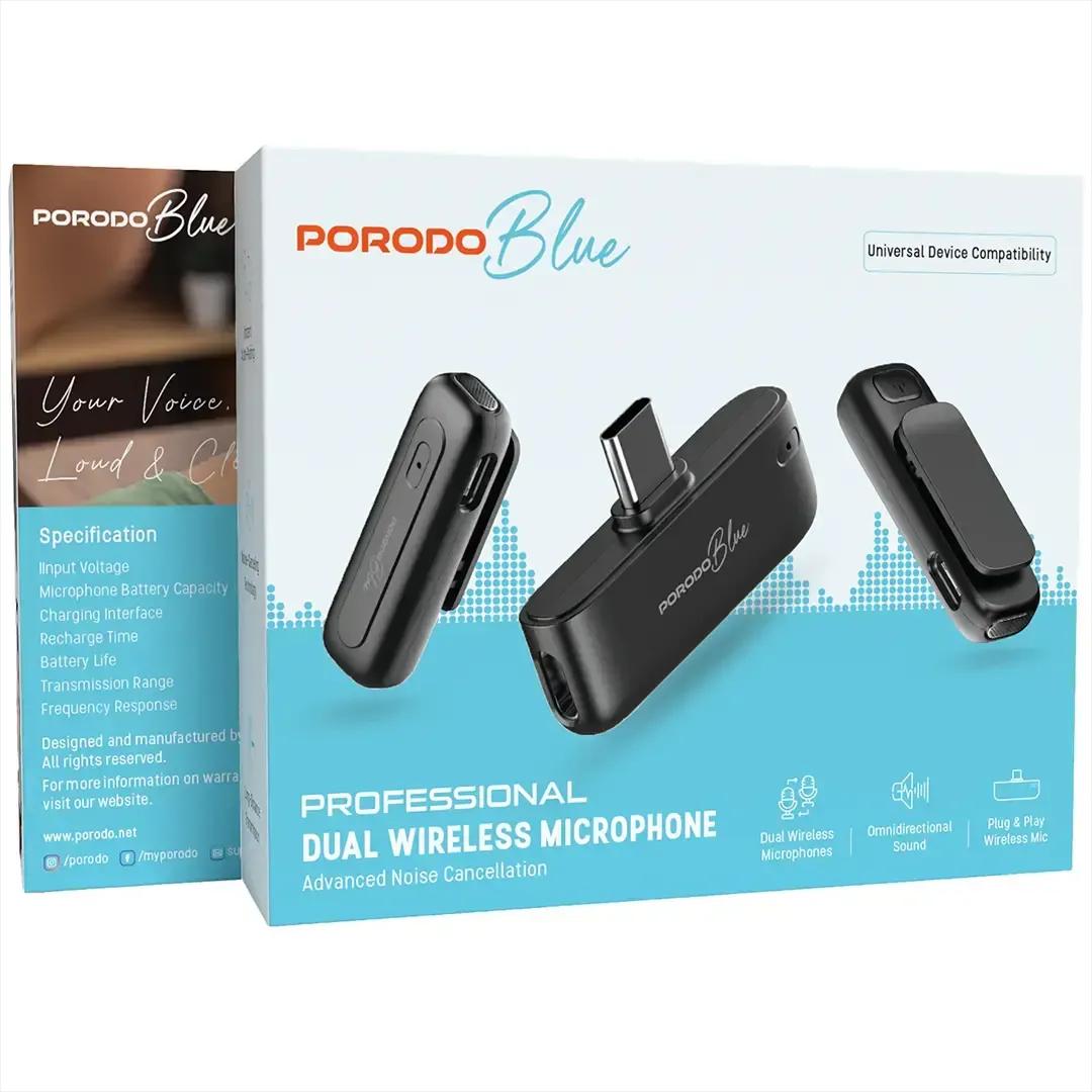Porodo PBMX2CBK Blue Professional Dual Wireless Microphone