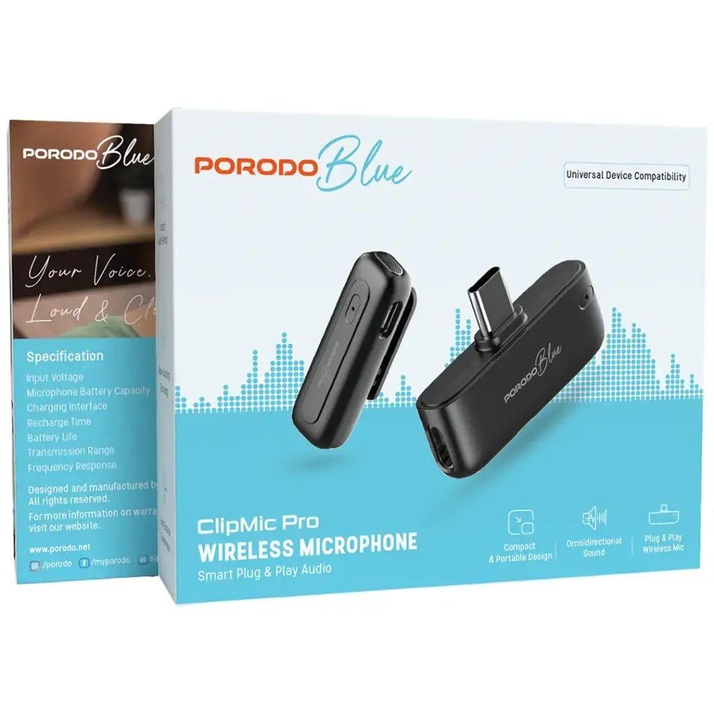 Porodo PBMX1CBK Blue ClipMic Pro Wireless Microphone