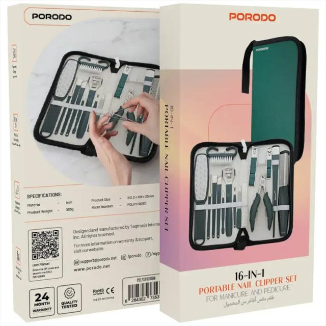 Porodo PDLFST8010 16-In-1 Portable Nail Clipper Set for Manicure & Pedicure
