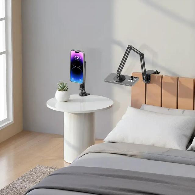 The black Porodo Foldable 360° Rotatable MagSafe Phone Stand with Expandable Length is a combination of flexibility and accuracy that gives users the chance to adjust the angle easily for the best viewing experience. The rotating design makes this stand able to effortlessly position any devices at all angles, thus making it the best support not only for work but also for leisure time. The integrated MagSafe phone mount keeps your smartphone secure while the stand guarantees a firm and safe grip. Its foldable structure makes it easy to store and carry, and its wide compatibility with smartphones (4"-7") adds to its versatility. Whether it is on your desk or nightstand, the MagSafe Phone Stand always provides ergonomic and flexible comfort. It is the best for hands-free viewing, video calls, or media watching; it gives maximum convenience and comes with an elegant design to upgrade your setup.
