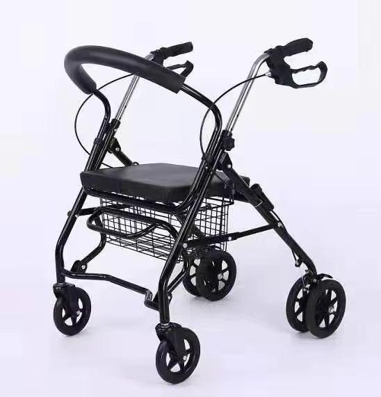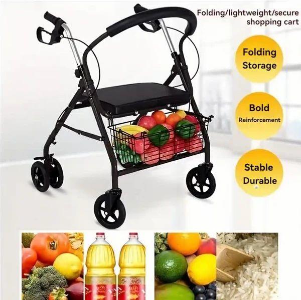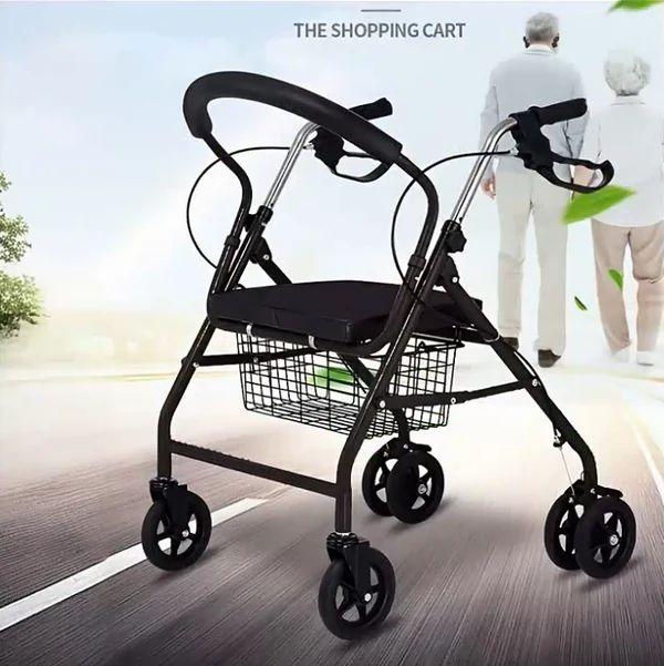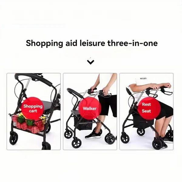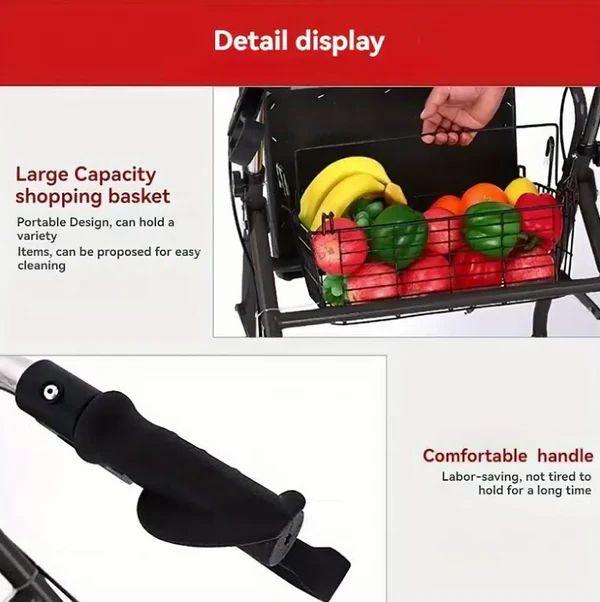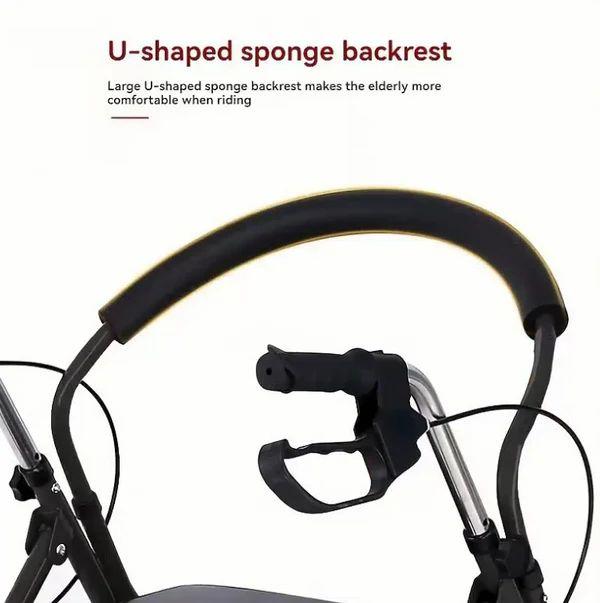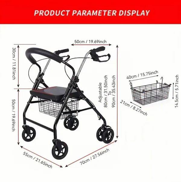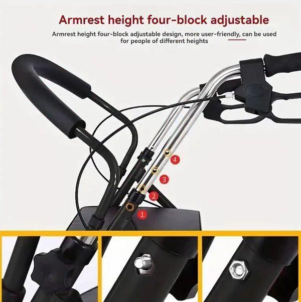 Aluminum Rollator Walker Chair with Foldable Seat, Backrest & 6 Wheels