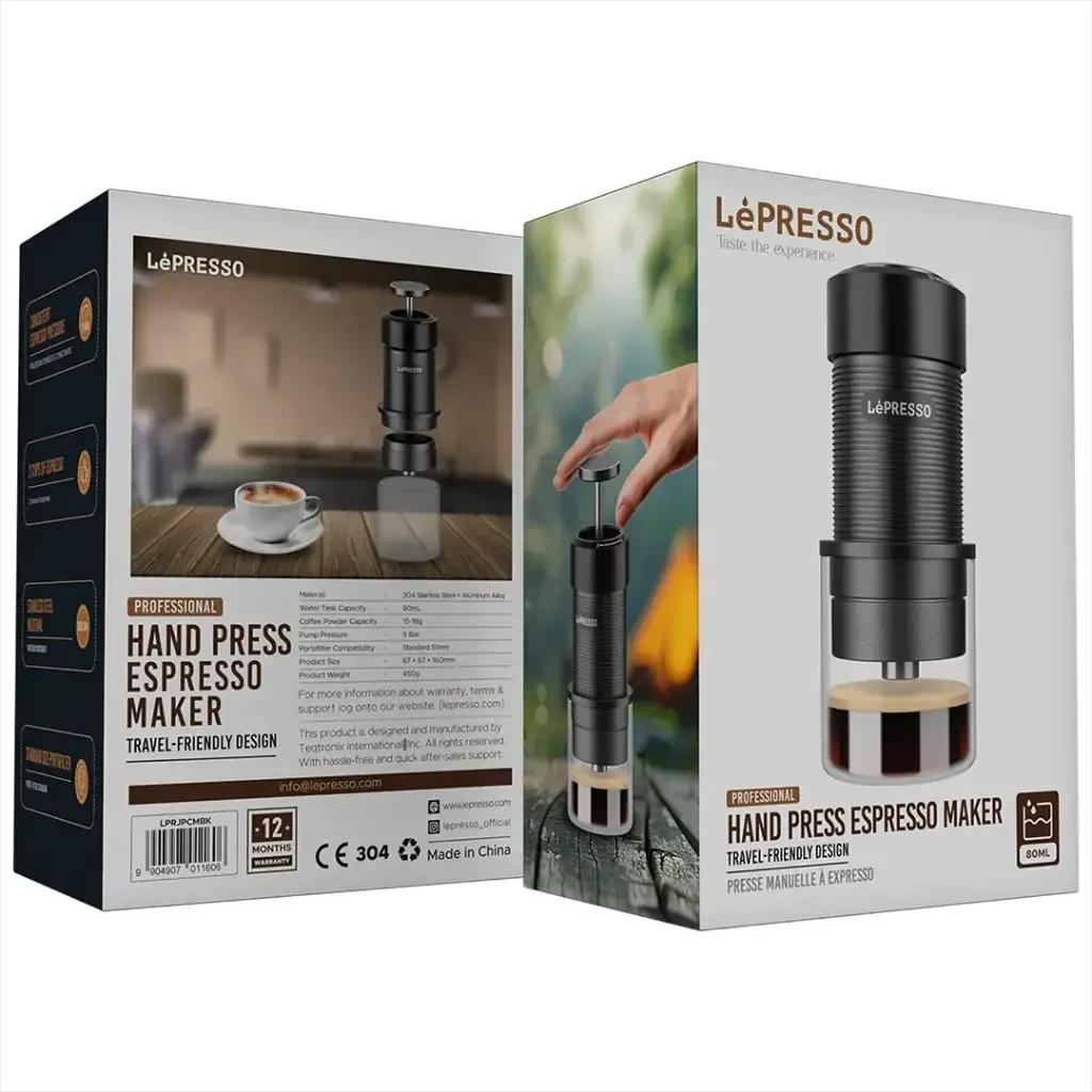 Lepresso LPRJPCMBK Hand Press Espresso Maker – Portable Manual Espresso Machine