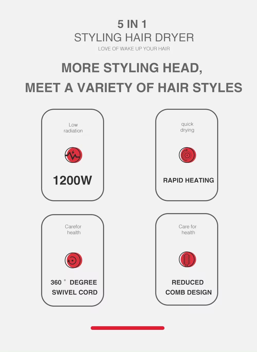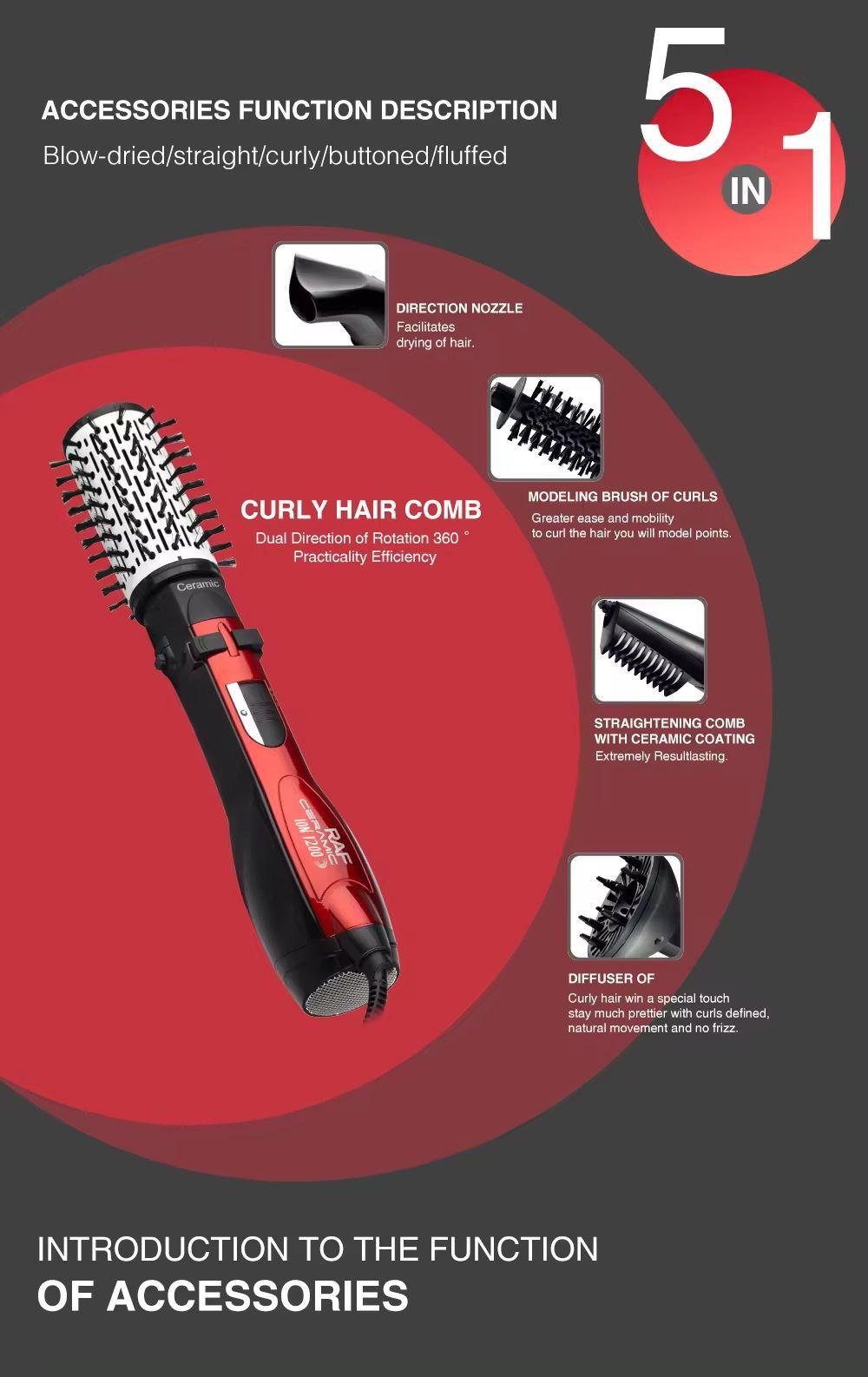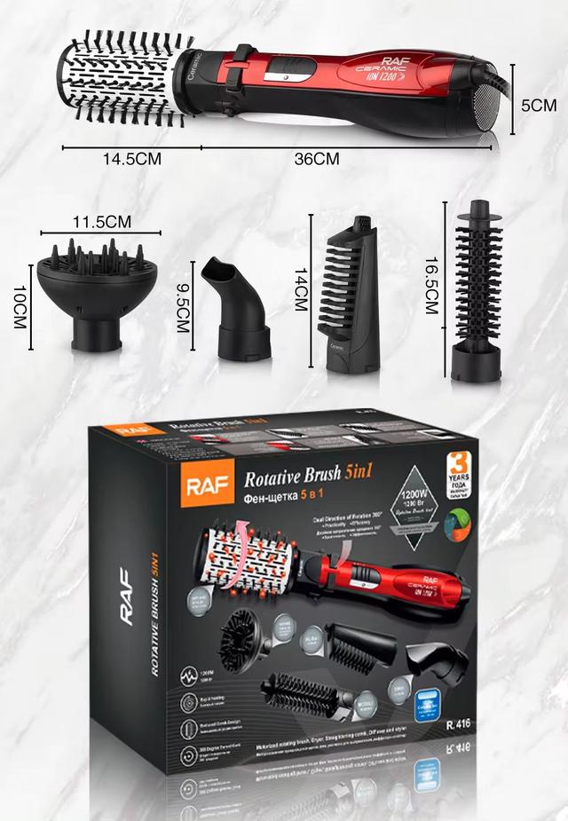 RAF 5-in-1 Multi-Functional Rotative Hair Styling Brush – Hot Air Comb, Straightener, Curler, Volumizer & Diffuser