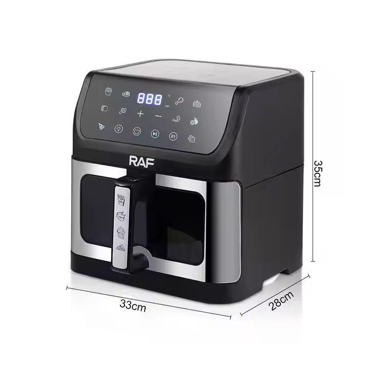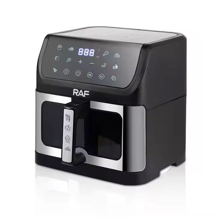 The RAF Multifunctional Digital Air Fryer revolutionizes your kitchen with a spacious 10L capacity and advanced touch screen controls. Reduce oil use by 80% while frying, baking, roasting, or grilling your favorite meals. Its 360° air circulation ensures fast, even cooking, while the visible window lets you monitor progress easily. Made with durable stainless steel, it features non-stick cooking surfaces, overheat protection, and adjustable thermostat and time controls, making it a must-have for every modern kitchen.