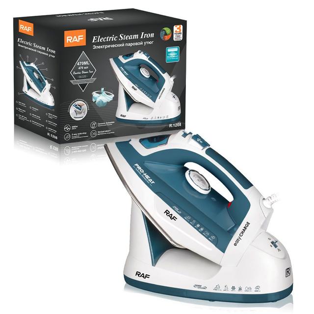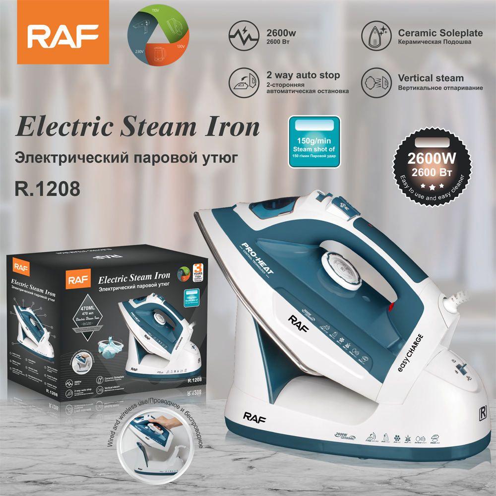 RAF 53-R1208 Electric Steam Iron – 2600W, Ceramic Soleplate, Vertical & Continuous Steam, 470ml Tank, Wired & Wireless Use, Auto Stop Safety