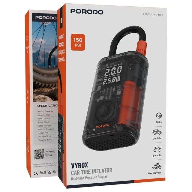 Porodo PDGA05BK Vyrox Car Tire Inflator