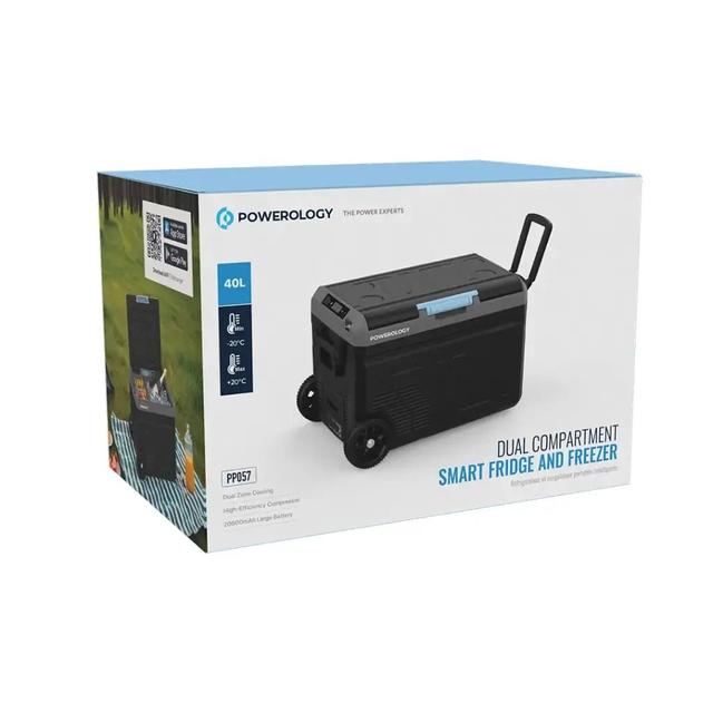 Powerology PPBCHA57 Dual Compartment Smart Fridge & Freezer – 40L Portable with 20800 mAh Battery
