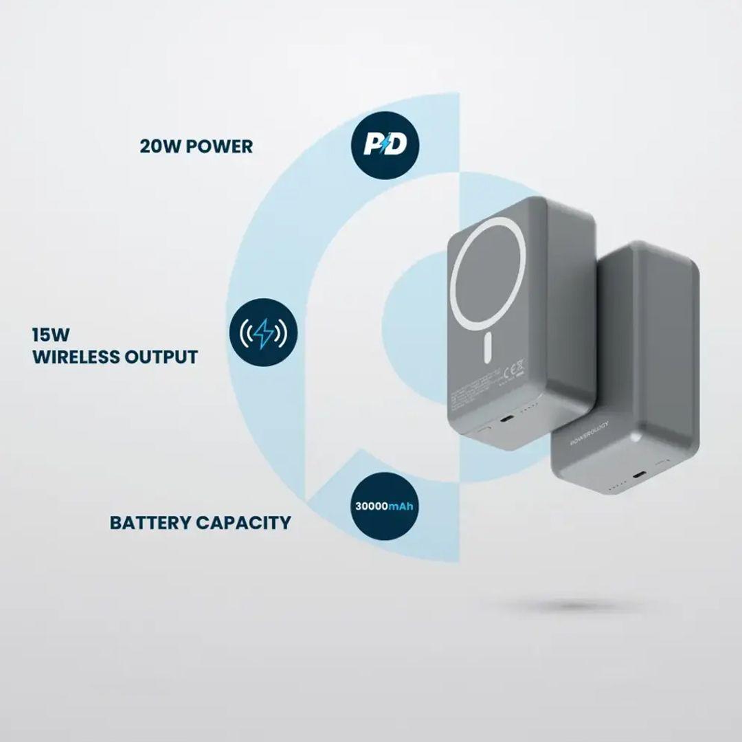 Powerology PPBCHA81 Wireless Power Bank Magnetic Powerology 30000mAh with 20W Fast Charging Type-C