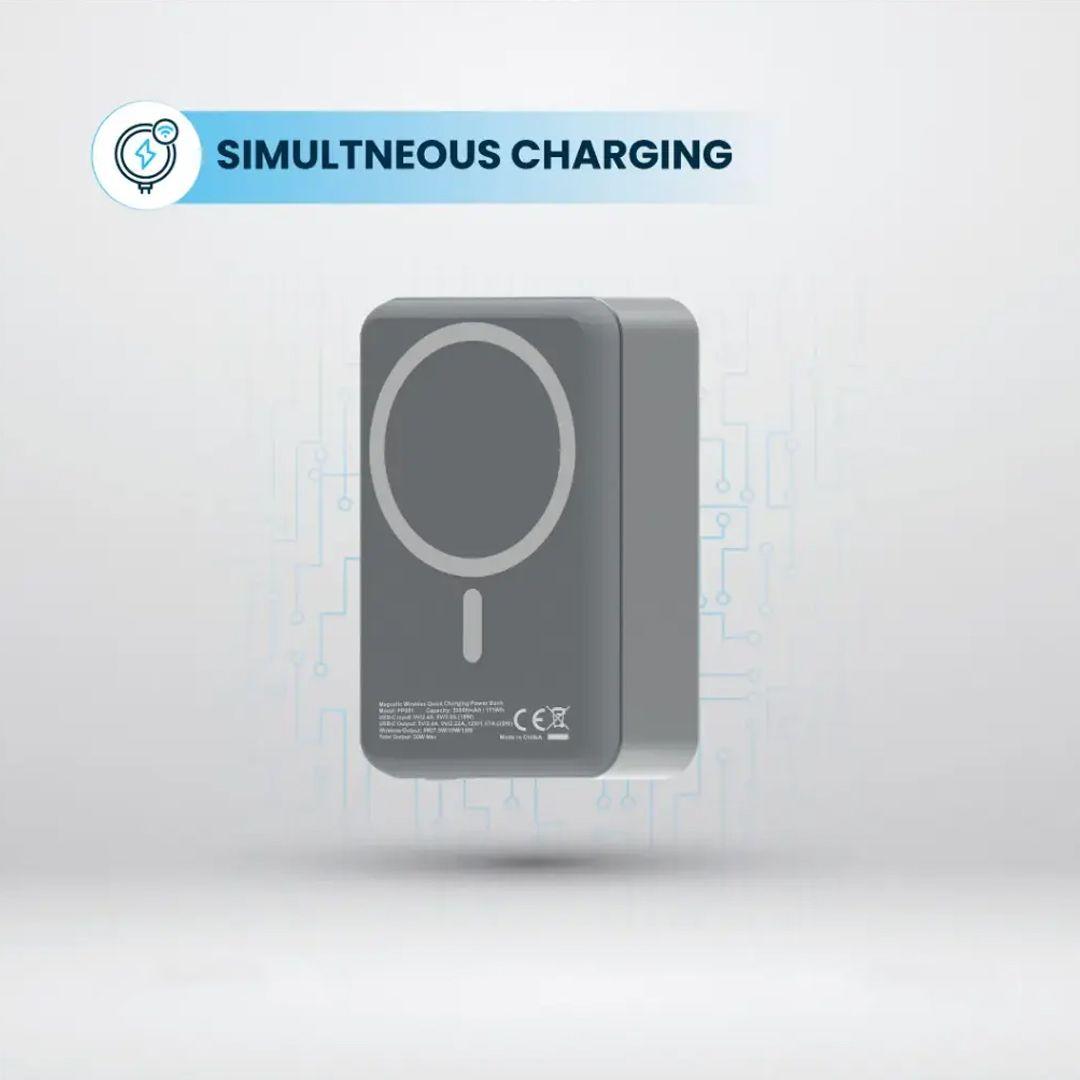 It supports simultaneous charging, so you can power your phone, smartwatch, or earbuds at the same time — wired or wirelessly.