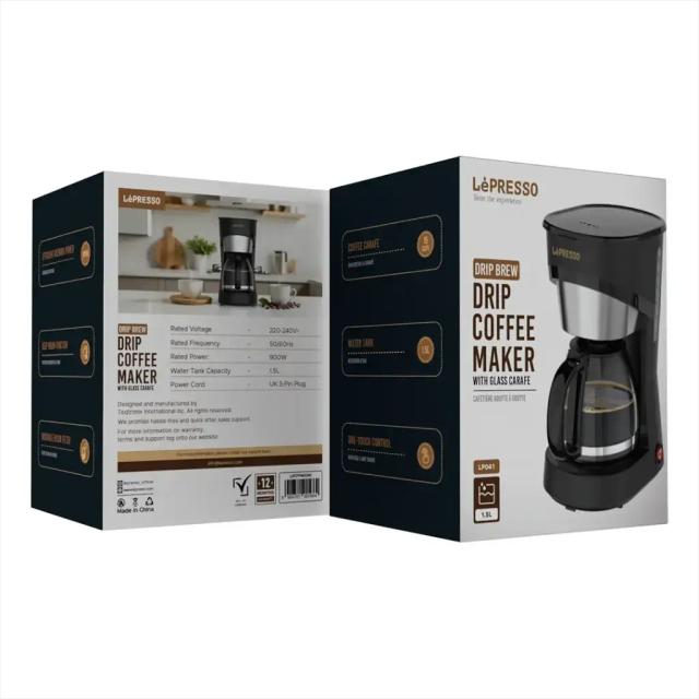The Lepresso Drip Coffee Maker provides much-needed ease and convenience when it comes to brewing coffee. With a rated power of 900W, it assures quick brewing, thus, fast caffeine action at your hand. With a 1.5L water tank capacity, this deep coffee maker makes about 15 cups, thus being suitable for a whole family or a gathering. The one-touch control offers a very smooth operation while brewing without complications. The keep-warm function keeps coffee warm for lengthy periods. Another convenient feature of this coffee maker is the washable nylon filter, easy to clean while cutting down on waste. It has a UK 3-pin plug that fits perfectly into UK power outlets. Whether making one cup or many, the Lepresso Drip Coffee Maker is best for any coffee lover who values convenience and quality.