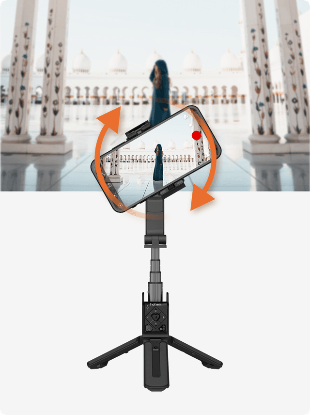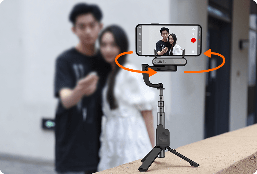 Rotate the arm by 90° to change the direction of rotation of the phone clamp, iSteady Q can transform into a 360° drotatable gimbal used on desk.