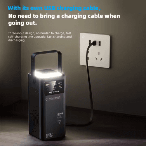 60000mAh Ultra High Capacity Portable Power Bank: This 60000mAh battery pack charger portable support over 15 charges for iphone 15, 14 times for Samsung S24. Long-lasting can keep the power of your devices over a week. This large power bank perfect suitable for travel, camping, hiking, vocation and other ourdoor activities