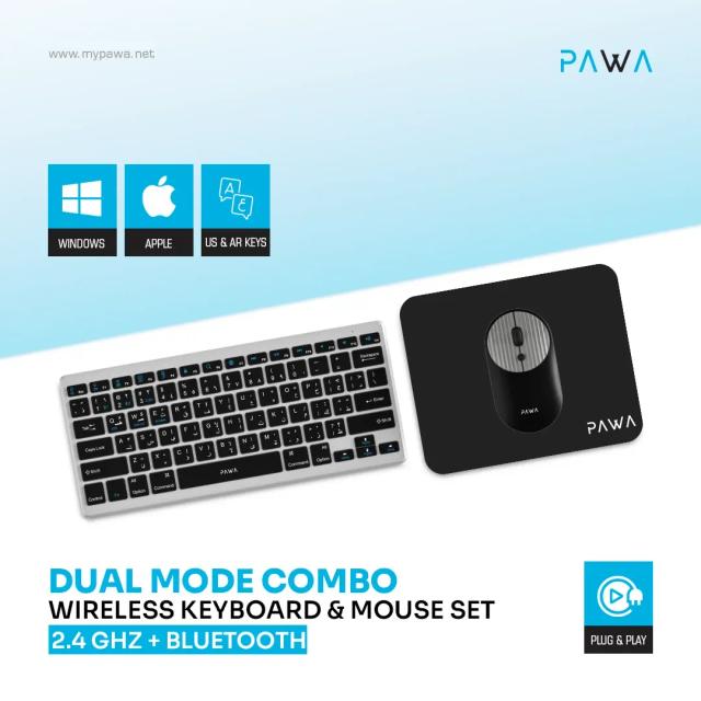 Pawa PW-KWMW2T1-GYBK Dual Mode Wireless Keyboard and mouse set