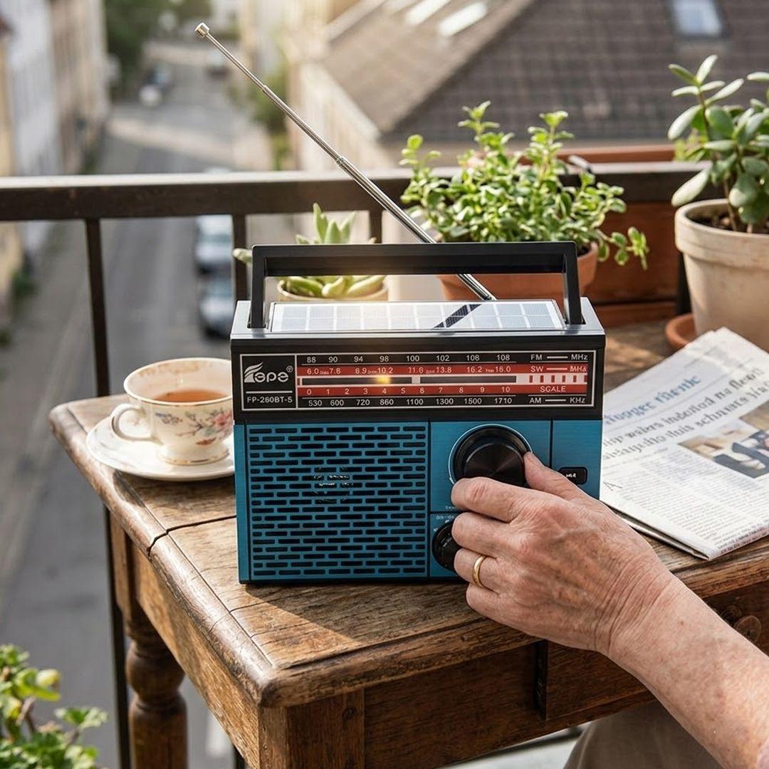 Portable wireless Bluetooth radio FP-260BT-S with microphone system, supports TF, USB, and FM functions
