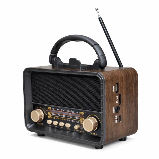 Meier M-1235BT Vintage Wooden Portable Radio with Wireless Stereo Speakers - AM/FM, USB TF Player