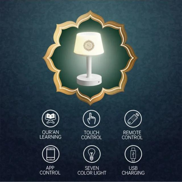 A 5W speaker delivers clear Quran recitation with voices of 16 reciters, allowing easy selection of surahs or verses using the remote control.