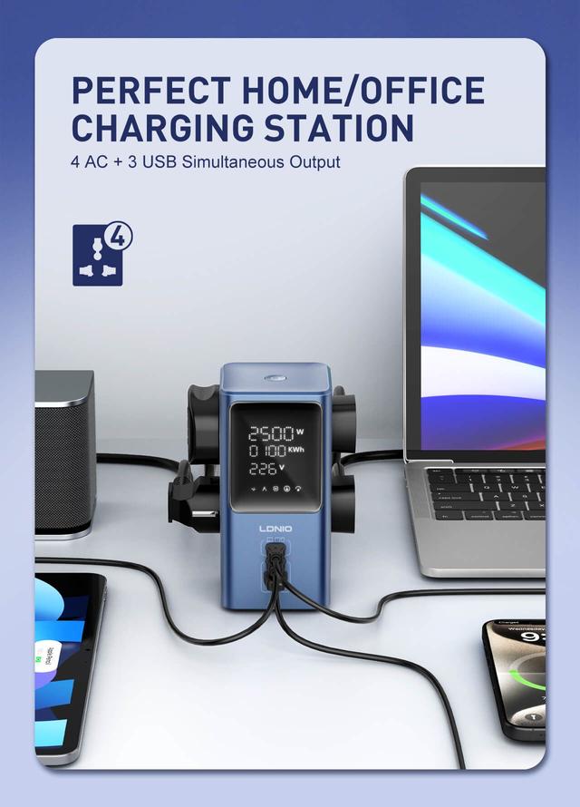Output 2500W, suitable for: any size of household appliances and mobile devices.