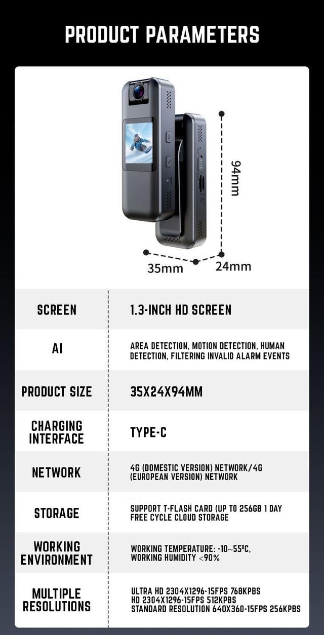 High-definition recording: Supports 1080P or 2K HD video for sharp and detailed footage